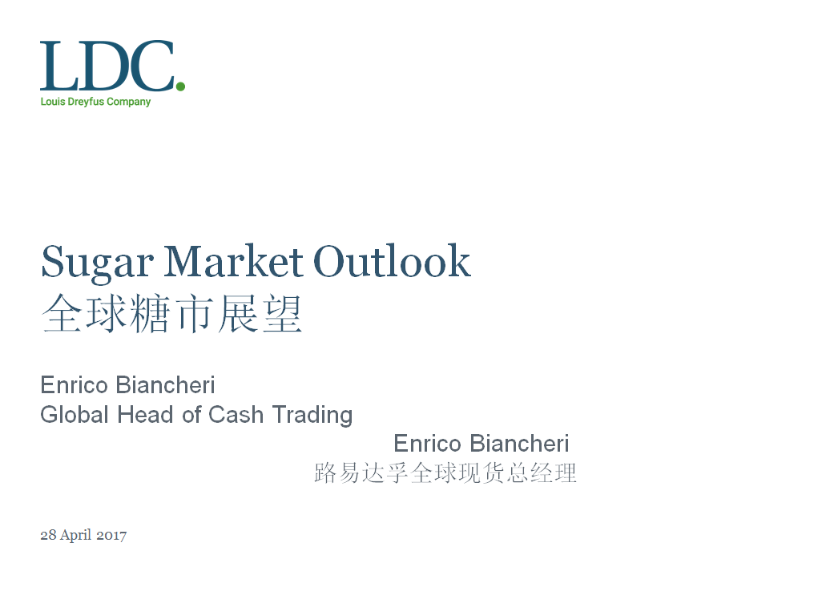 廣西糖網28日訊 中國(昆明)糖業高峰論壇及中國糖業協會商業流通會員座談會4月28日在昆明召開,在下午的會議上,路易達孚國際現貨貿易經理恩里.科比昂蓋里發表了《全球與巴西糖業展望》的主題發言。發言全文如下: