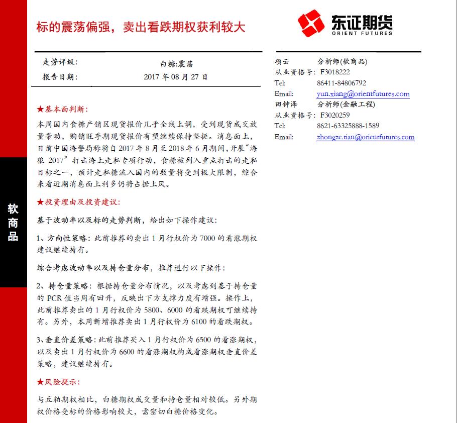 東證期貨白糖周報:標的震蕩偏強,賣出看跌期權獲利較大_ _20170827.pdf