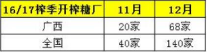 表三:16/17榨季廣西、全國11—12月份開榨糖廠