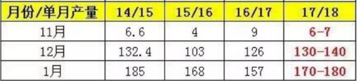 路邊社消息,17/18榨季廣西意見收購價格征求為500元/噸,假設按照500元/噸的甘蔗收購價格,按照計算運費、人工成本、管理費用、蔗渣、桔水、燃料、制造費用、稅費等相關費用,筆者預計廣西假如甘蔗收購價格在500元/噸,廣西糖廠的食糖銷售成本在6000-6300元/噸,小的糖廠成本相對偏高。同比去年的新糖成本有所提高,但是12月新糖集中上市考慮到糖廠兌付甘蔗款問題和糖源供應多和增產周期,新糖價格上市可能會以相對低的價格走量為主。預計食糖銷售成本線附近報價銷售。