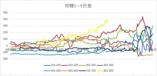 從預計10月底廣西集團庫存情況看,10月底預計集團庫存合計為18-20萬噸左右。假如11月中下旬廣西只有5-7家糖廠開榨,11月底之前廣西的庫存同樣相對緊張,但傳廣西11月開榨10家糖廠左右,預計產糖5-8萬噸,關鍵看11月份廣西實際開榨糖廠的數量。后期變量在于,11月——12月廣西能產多少糖以及隨著甜菜糖的大量上市能否降價給出注冊倉單的空間,使得SR1801合約多頭軟逼倉預期破滅SR1-5價差再次縮小。