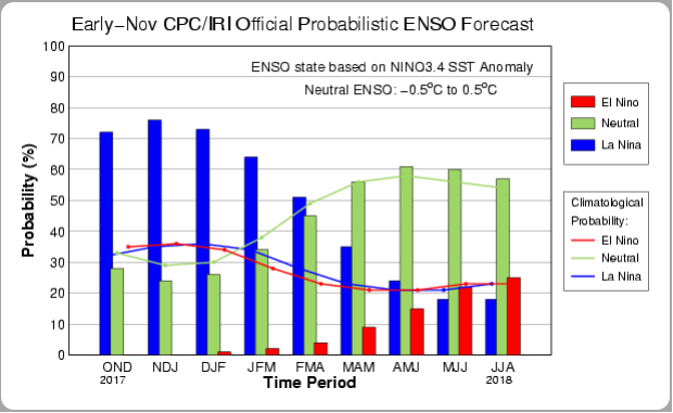 美國氣象機構(gòu)預(yù)計拉尼娜在北半球的冬季發(fā)生的概率至少有65%到75%的發(fā)生概率。澳大利亞氣象局發(fā)布預(yù)警,拉尼娜可能下個月出現(xiàn),出現(xiàn)幾率是正常水準(zhǔn)的三倍。因此從這兩個氣象機構(gòu)的發(fā)布來看,這個冬季發(fā)生弱拉尼娜的風(fēng)險依舊存在,我們可以繼續(xù)關(guān)注天氣風(fēng)險。