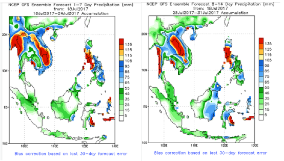 泰國過去三十天的降雨量和往年相比屬于正常偏多,而從未來兩周的降雨量來看依舊還是屬于正常,東北部和北部產區的降雨比較多。正常的降雨依舊是有利于甘蔗的生長,為下個榨季產量的增加奠定了一個良好的基礎。