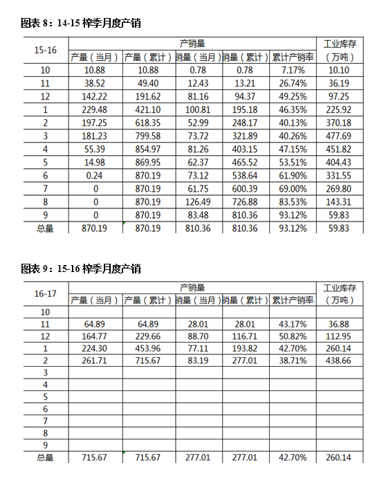 我們在3月初曾赴廣西了解產(chǎn)量,得出本榨季產(chǎn)量可能遠低于預(yù)期的結(jié)論,目前的收榨進度也在反映這一預(yù)期,這也是糖市能夠在商品普跌行情中依然保持偏強走勢的原因之一。預(yù)期產(chǎn)量廣西570萬噸,最終產(chǎn)量或許只有530萬噸,而15-16榨季也有511萬噸,預(yù)期中的大幅增產(chǎn)轉(zhuǎn)為略微增產(chǎn)。從總平衡表看,上下浮動數(shù)十萬噸供給量確實不會造成重大供需轉(zhuǎn)變,但從結(jié)構(gòu)上或許就會出現(xiàn)一些變化。