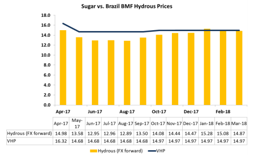 17/18年度的糖醇比天平仍然大幅傾向于糖,因糖收益高于乙醇。然而,加油站的乙醇價格約為汽油價格的69%,消費者仍然更傾向于消費汽油,6-7月期間乙醇折糖價可能進一步下跌30-40個點。