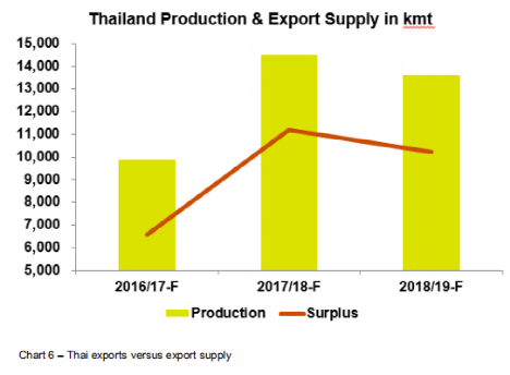 泰國(guó)產(chǎn)量與出口量(千噸)