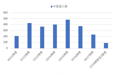 圖2:2016/17年和2017/18前兩季度中國進口來源變化