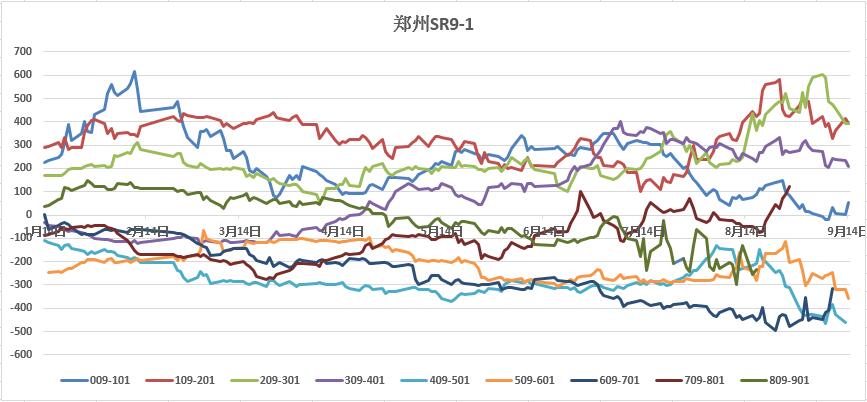 SR9-1收盤價差-234環比上周繼續走弱,假如甜菜倉單難以消化預計SR1809合約下跌還會進一步拉大價差空間。