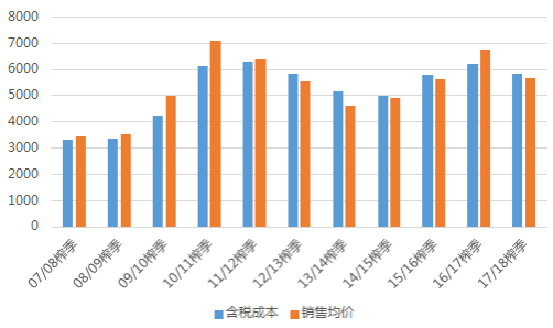 表二:不同產(chǎn)區(qū)不含稅成本預計