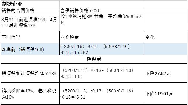 毫無(wú)疑問(wèn),4月1日增值稅下調(diào)后,白糖產(chǎn)業(yè)上下游企業(yè)的應(yīng)繳稅額均出現(xiàn)下降,企業(yè)利潤(rùn)得到提升。