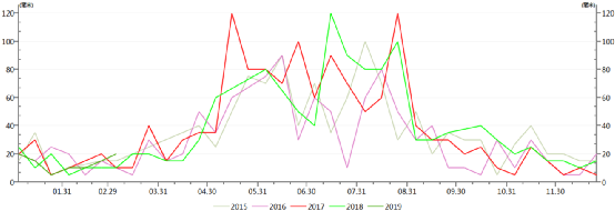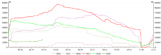 圖2. 鄭商所白糖倉單季節(jié)性走勢圖