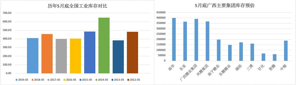 圖一:5月底全國工業庫存和廣西主要集團庫存預估