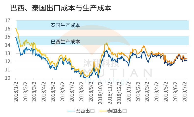 目前印度的壓力在于18/19榨季創(chuàng)紀(jì)錄的高結(jié)轉(zhuǎn)庫(kù)存及19/20榨季預(yù)計(jì)再次超出國(guó)內(nèi)需求的產(chǎn)量,都需要通過(guò)出口解決。莫迪在今年5月底贏得大選連任印度總理,目前正在對(duì)各項(xiàng)政策進(jìn)行新一周期的修正,預(yù)計(jì)其對(duì)糖業(yè)的扶持政策將會(huì)延續(xù)。至少19/20榨季結(jié)束前,印度刺激出口的政策不會(huì)停止,出口補(bǔ)貼雖然在WTO面臨壓力,但有望用其他補(bǔ)貼方式替代,下榨季印度糖仍然會(huì)以遠(yuǎn)低于其生產(chǎn)成本的價(jià)格出口。同時(shí)關(guān)注19/20榨季的最低食糖出廠價(jià)格是否進(jìn)一步上調(diào),這將進(jìn)一步擴(kuò)大印度的內(nèi)外價(jià)差。