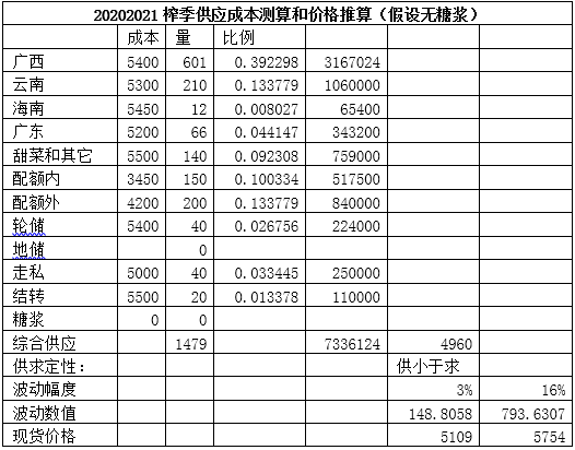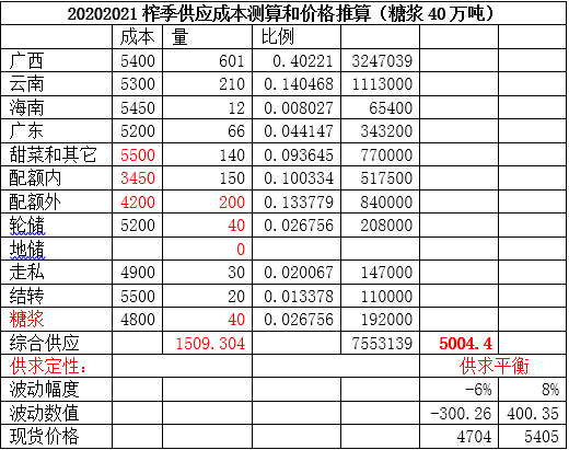 以2020/2021榨季為案例,分析糖漿對(duì)中國(guó)白糖產(chǎn)業(yè)的影響。詳見(jiàn)下表:
