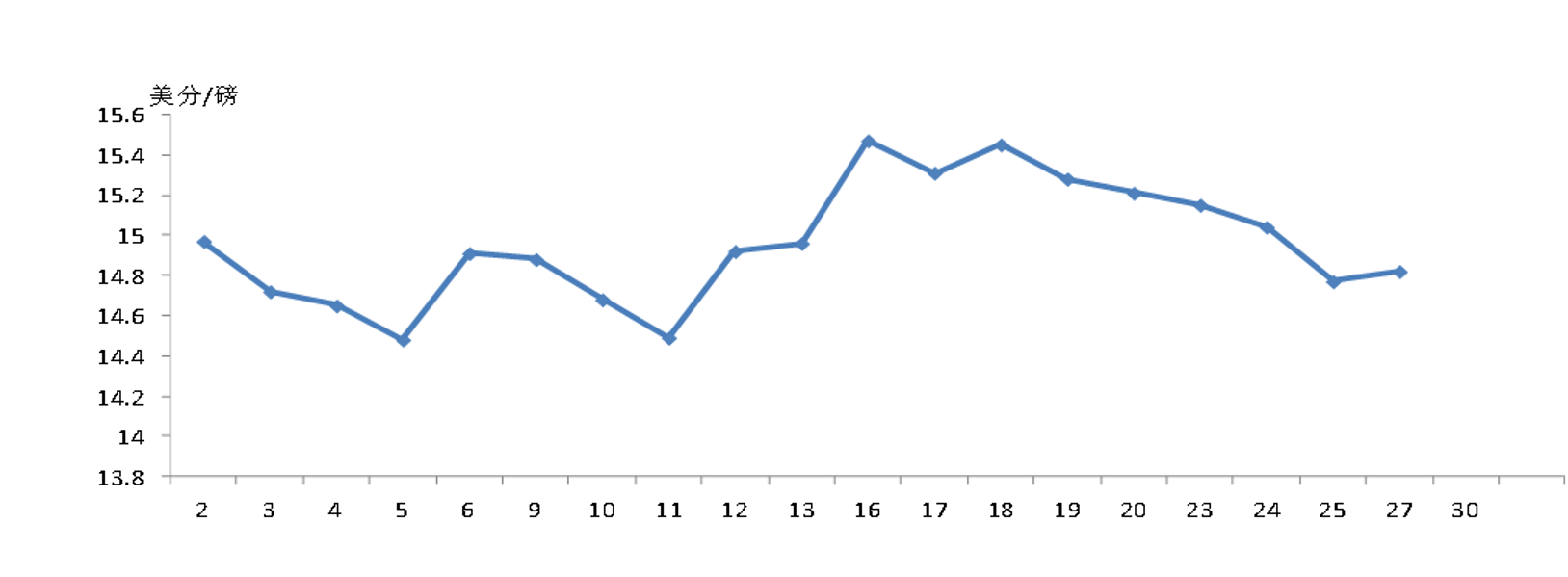 3.國際糖價為洲際交易所(ICE)原糖期貨1903原糖合約(每日結(jié)算價)均價