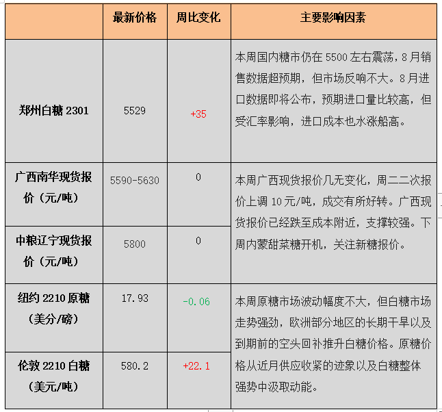 21/22榨季全國共產糖956萬噸,同比減少110萬噸;截至8月底累計銷糖788萬噸,同比減少88萬噸;累計銷糖率82.5%,同比提高0.3個百分點;工業庫存168萬噸,同比減少22萬噸。
