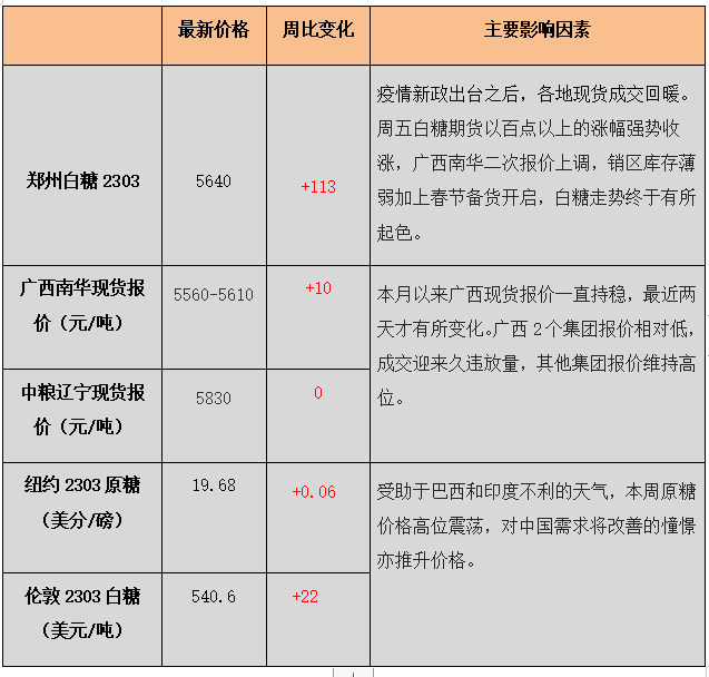 截至11月底,22/23年制糖期甜菜糖廠已有6家停機,甘蔗糖廠陸續開榨。全國共產糖85萬噸,同比增加9萬噸;累計銷糖15萬噸,同比減少2萬噸;累計銷糖率18.2%,同比下降3.98%;工業庫存70萬噸,同比增加11萬噸;全國制糖工業企業成品白糖累計平均銷售價格5649元/噸,同比下跌130元/噸。