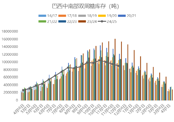本榨季截至11月底巴西中南部地區工業糖庫存續降至897萬噸,同比減少近650萬噸,也是近6個榨季同期最低水平,其中高等級原糖庫存500萬噸,同比減少490萬噸。目前的的低庫存將制約巴西未來幾個月直至新榨季開榨前的出口國供應,預12月至明年3月期間的月均出口上限將在150萬噸,低于最近10個榨季同期的平均水平。而25/26榨季糖廠的開榨時間將是影響貿易流供應的主要變數。