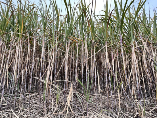 本次重點調研了扶綏縣芭盆鄉、東門鎮、馱盧鎮,江州區羅白鄉、渠舊鎮。從調研情況來看,崇左蔗區病蟲害是四大產區里最嚴重的,空心程度也高于其他蔗區,一路上感覺溫度高很干燥。不過護理程度也比較高,看到不少連片的覆蓋地膜、灌溉澆水的蔗地,甘蔗倒伏多數也有扶起。