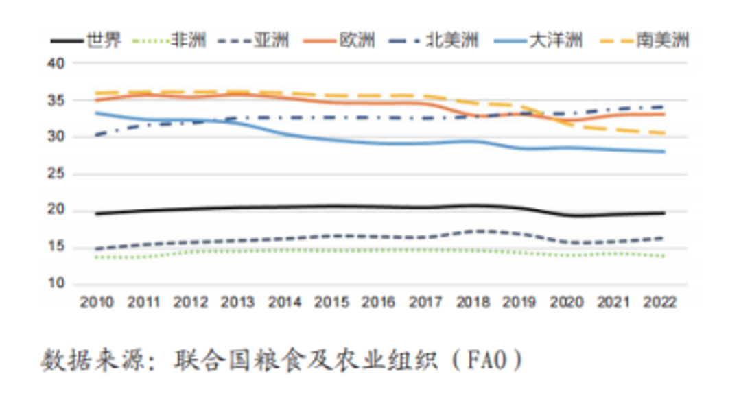 近10年全球人均食糖消費量維持在20.2千克左右,幾無增長,平均增速僅為0.08%。具體變化來看,10年前南美洲人均食糖消費位居首位,但近年降幅明顯,從2010年35.91千克降至2022年30.56千克,平均增速-1.33%,被北美洲和歐洲趕超;歐洲常年穩定在32.27千克至35.74千克范圍;北美洲和亞洲是近年消費支撐的主力,北美洲由2010年30.28千克增至2022年的34.08千克,平均增速1.01%;亞洲由2010年的14.90千克增至2022年16.37千克,平均增速0.98%;大洋洲降幅明顯,從2010年33.25千克降至2022年28.04千克,平均增速-2.48%;非洲則常年穩定在14千克左右,平均增速-0.49%。