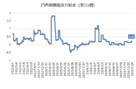 巴西原糖(VHP)現(xiàn)貨對3月期貨合約升水從前一周的22個點小降至19點(2月船期),糖廠大部分收榨加上近期雷亞爾/美元匯率反彈,或在新榨季啟動前對價格形成支撐。