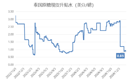 泰國截至1月23日累計產(chǎn)糖約422.72萬噸,同比增加45萬噸。本榨季至今的產(chǎn)糖率達到10.04%,高于去年同期的9.6%。目前泰國糖庫存較為充足,除了生產(chǎn)進度提前的原因外,糖漿禁令和印尼等待進口配額,對需求造成影響,此外有貿(mào)易商認為近期印度允許出口100萬噸糖對市場價格形成擾亂,1月初至今,泰國原糖現(xiàn)貨對紐約原糖期貨3月合約升水下滑35個點,至85個點(2月船期)的近13個月低位。
