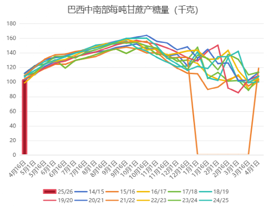 從天氣情況看,4月份中南部主產區的降水略有好轉,但5月前兩周天氣重新恢復干燥,整體來說4-5月的天氣均有利于糖廠加快壓榨進度。值得注意的產量風險是,4月上半月的甘蔗ATR指標同比下降3.19%,僅為103.22千克/噸,低于歷史同期均值107千克/噸,也是最近三年同期的最低水平,因此去年的火災及干旱對甘蔗實質性質量的影響仍需進一步關注,有可能會抵消制糖比例上調觸發的糖產量增幅。目前市場對25/26榨季甘蔗壓榨量的主流預估區間在5.9-6億噸,但極端預估在5.6-6.3億噸,如果5月份持續出現少雨、高溫天氣,后期市場的甘蔗估產或繼續調整向低區間靠攏。