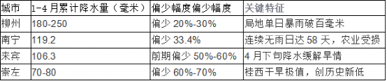 柳州市因桂北暴雨集中且累計(jì)雨量最高,成為1-5月四市中降雨最多的城市。