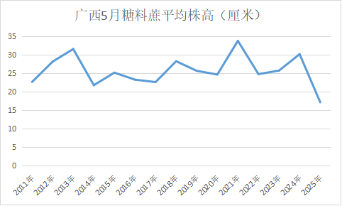 總結(jié):2025年廣西天氣呈現(xiàn)“前旱后澇、旱澇急轉(zhuǎn)”的特征。2024年9月至2025年4月降水持續(xù)偏少,打破了64年以來(lái)同期降水的歷史極值。導(dǎo)致宿根蔗發(fā)株困難,新植蔗播種進(jìn)度延遲。總體看桂南旱情最嚴(yán)峻,而桂北雖前期受旱,但5月強(qiáng)降雨后旱情緩解更為明顯。因極端天氣的影響,廣西2025年甘蔗最終產(chǎn)量將取決于后期的旱澇平衡與后續(xù)田間管理成效,存在極大的變數(shù)。