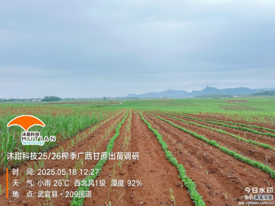崇左羅白蔗區(qū)新植蔗長(zhǎng)勢(shì)好,土壤濕潤(rùn)
