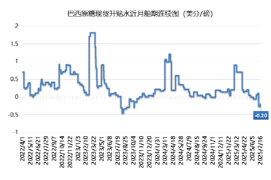 7月以來,巴西原糖現貨升貼水逐漸顯現壓力,對10月期貨合約貼水20個點(7月船期)。