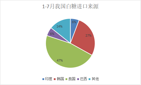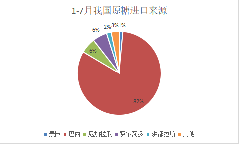 2025年1-7月我國進口食糖179萬噸,其中白糖16.84萬噸,從泰國進口最多7.92萬噸,其次是韓國4.59萬噸,第三從印度和巴西各進口約1萬噸;原糖161.25萬噸,其中從巴西進口最多132.29萬噸,占比高達82%,其次從尼加拉瓜和薩爾瓦多各進口9-9.6萬噸,還有2.4萬噸、2.9萬噸分別從泰國和洪都拉斯進口。