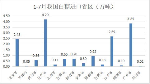 2025年1-7月我國累計進口食糖179萬噸,其中白糖16.84萬噸,主要為遼寧進口4.2萬噸,其次為廣東3.85萬噸,第三山東、北京均為2.5萬噸左右;原糖161.25萬噸,其中山東進口最多30萬噸,其次遼寧、廣東均為25萬噸左右,第三河北、廣西均為約23萬噸,還有北京16.64萬噸、福建10.77萬噸以及江蘇7萬噸。7月份進口的約70萬噸原糖其中河北16萬噸、廣西14萬噸、遼寧10萬噸、廣東9萬噸、山東8萬噸、福建和江蘇均為5-6萬噸、北京2萬噸,基本上沿海加工廠均有原糖報關。