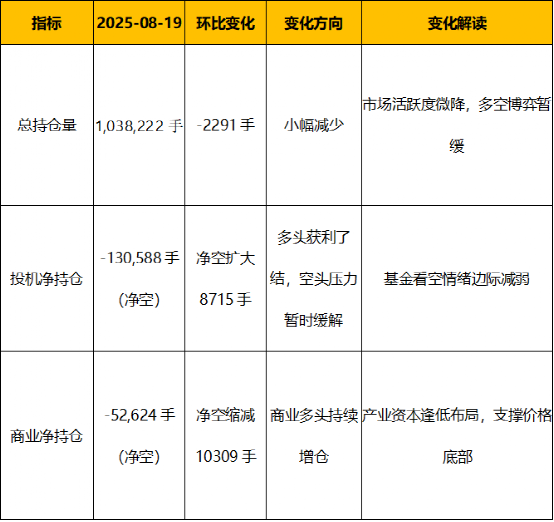 本周商業多頭增倉或反映部分貿易商逢低采購。但前一周減倉表明生產商對價格反彈信心不足,可能仍傾向于逢高套保。若商業多頭未能持續增倉,或削弱當前底部支撐信號。