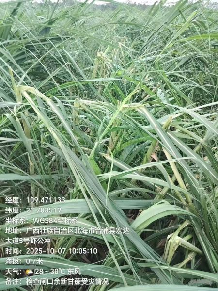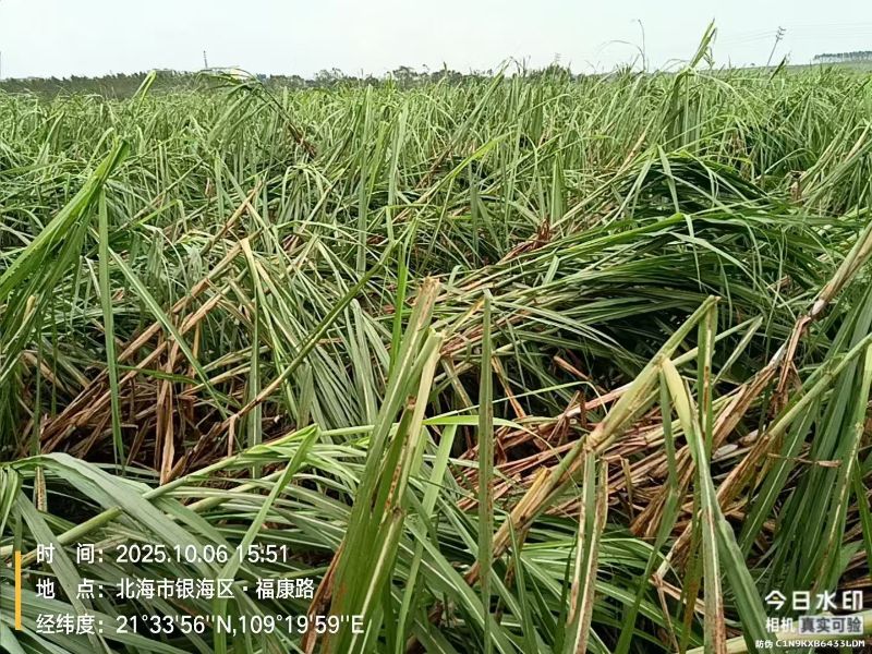 公開資料顯示,2024年北海甘蔗種植面積近50萬畝。以下為臺風過后的蔗區受災情況: