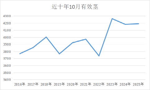 從調研情況看,廣西10月份甘蔗總體長勢恢復良好,平均株高略矮一些;有效莖除了南寧蔗區下降外,柳州、來賓、崇左株數略微增加;10月單產基本持平,錘度下降較多。在面積增加的基礎上,因此我們當前總體評估2025/26榨季廣西的甘蔗產量較為樂觀,但甘蔗含糖預計回歸正常或略低的水平。