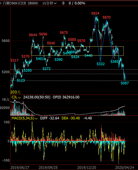 鄭糖繼5430下破以來,震蕩下行,一直未出現(xiàn)止跌信號(hào),至5094出現(xiàn)有接近結(jié)束的結(jié)構(gòu),若下跌止于5087附近則下跌結(jié)構(gòu)也就趨于完整。