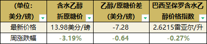 然而,巴西雷亞爾兌美元匯率貶值至歷史新低,直接拉低乙醇的原糖折算價格至13.98美分/磅,周環(huán)比下跌3.19%。